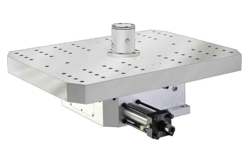 The hydraulic lines for fixtures and electrical cables for rotary tables are within the central column of the indexing pallet.