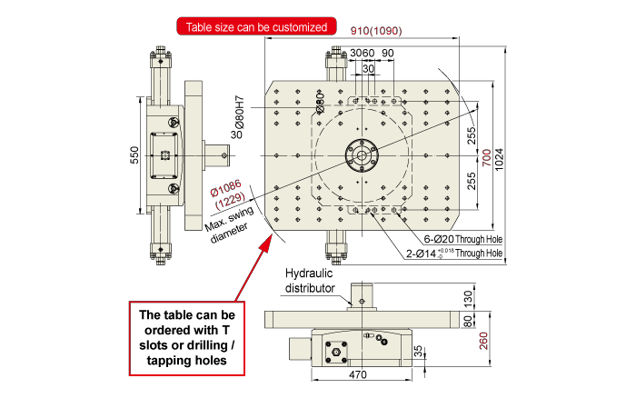 The dual table with the standard automatic indexing pallet is of rack & pinion type and rotates through 180 degrees.